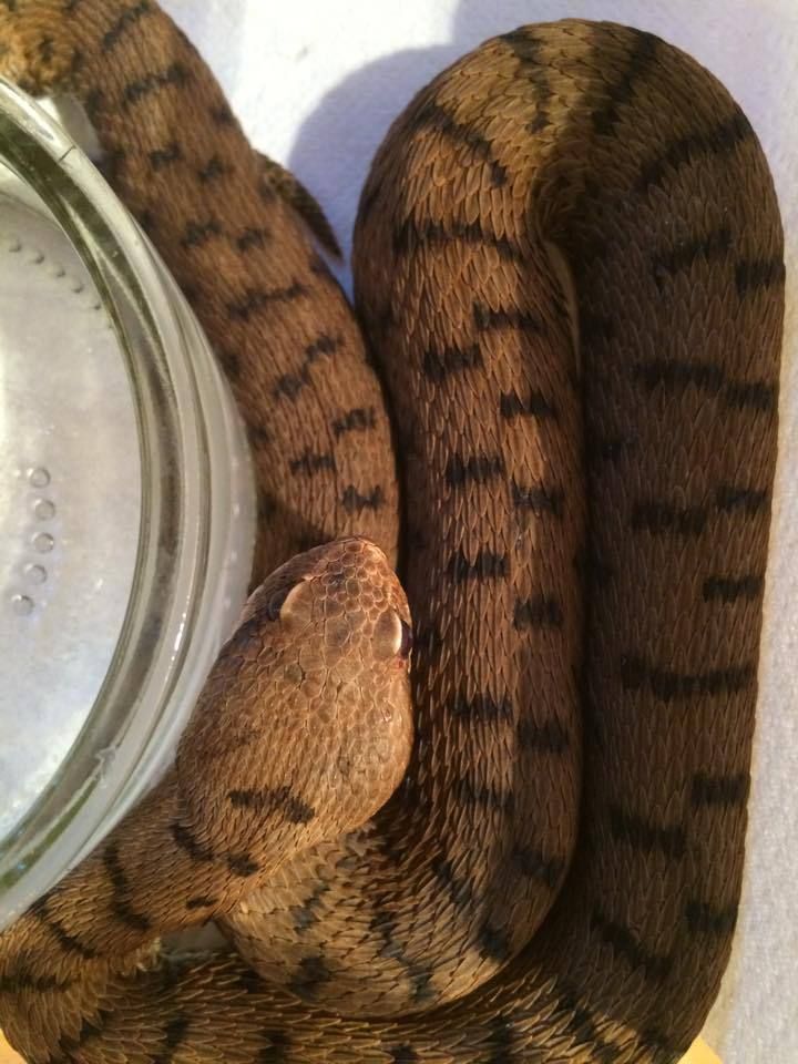 Ora il serpente è temporaneamente da me, al sicuro dai predatori (uomo incluso), sperando che riesca a riprendersi, anche se le speranze sono poche.